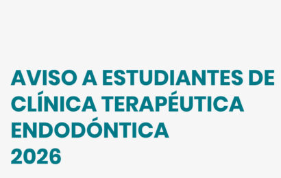 Con motivo del comienzo de la Clínica Terapéutica Endodóntica, se convoca a las y los estudiantes a una reunión informativa el martes 24 de febrero a las 18 horas. Enlace Zoom aquí ID de reunión: 889 7852 2120Código de acceso: Endo@2026@ Desde el equipo docente se informa que el lunes 2 de marzo, las y […]
