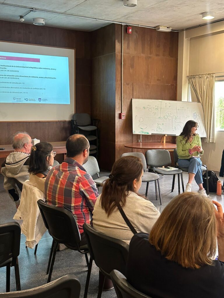 Estas instancias fueron impulsadas por el equipo de VAD en Facultad de Odontología, conformado por Julieta Parodi (Referente) y Florencia Cabral (Secretaría), quienes están implementando el plan de trabajo que tiene como objetivo la difusión de la política y los procedimientos VAD, la sensibilización en la temática sobre violencia, acoso y discriminación y la apropiación comunitaria de los instrumentos y herramientas que la Udelar pone a disposición para el abordaje y prevención de estas situaciones. “Estas instancias buscan generar espacios de conversación sobre posibles estrategias de prevención y futuras acciones institucionales en relación a la temática, de forma reflexiva y participativa”, mencionó Parodi y agregó que la disponibilidad y trabajo conjunto de la UCVAD ha sido fundamental en estas instancias.
