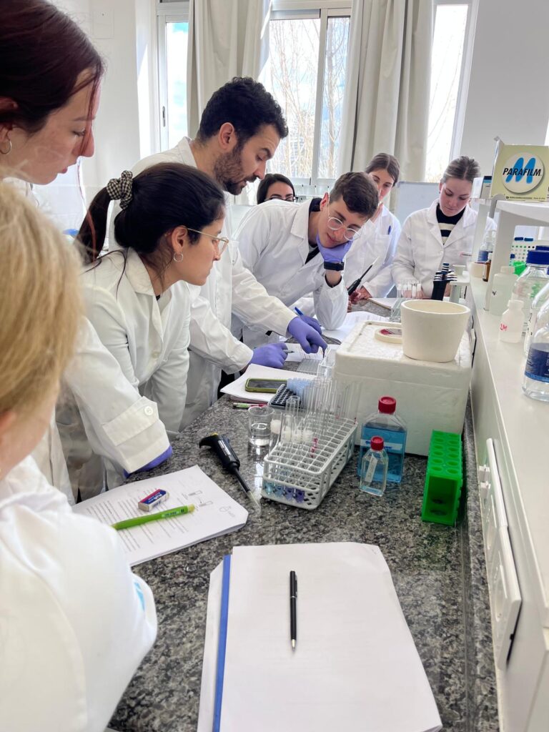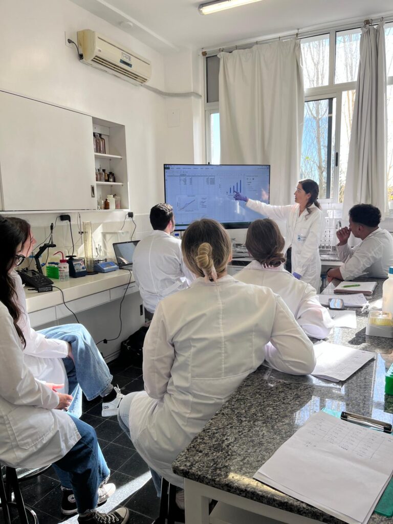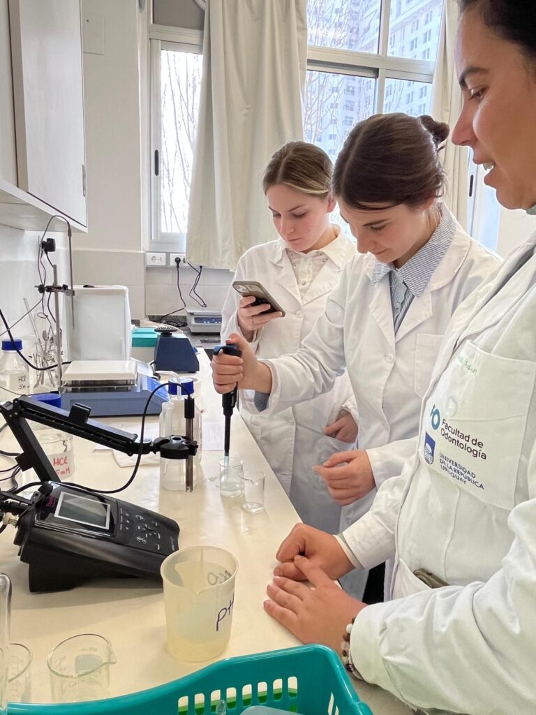 En las clases, los y las estudiantes experimentan, analizan y vinculan la bioquímica con problemas odontológicos reales, fortaleciendo la formación en investigación desde las primeras etapas de la carrera. El trabajo práctico de laboratorio promueve la adquisición de habilidades como el trabajo en equipo, el pensamiento crítico y la comunicación oral, ya que, al culminar el curso, los/as estudiantes deben presentar un trabajo científico relacionado con las actividades que han realizado.