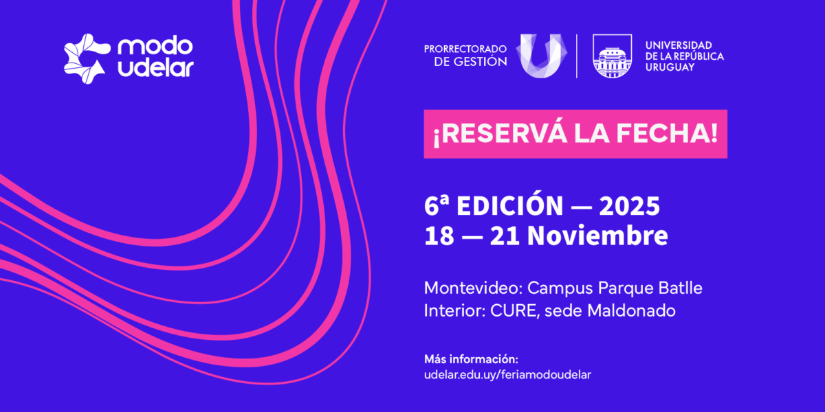 Del 18 al 21 de noviembre de 2025 se llevará a cabo la VI edición de la Feria Modo Udelar, un espacio de encuentro e intercambio entre docentes, estudiantes, funcionariado técnico, administrativo y de servicio (TAS) y egresadas y egresados, que mostrará a la sociedad uruguaya el Modelo de Gestión de la Universidad de la República.