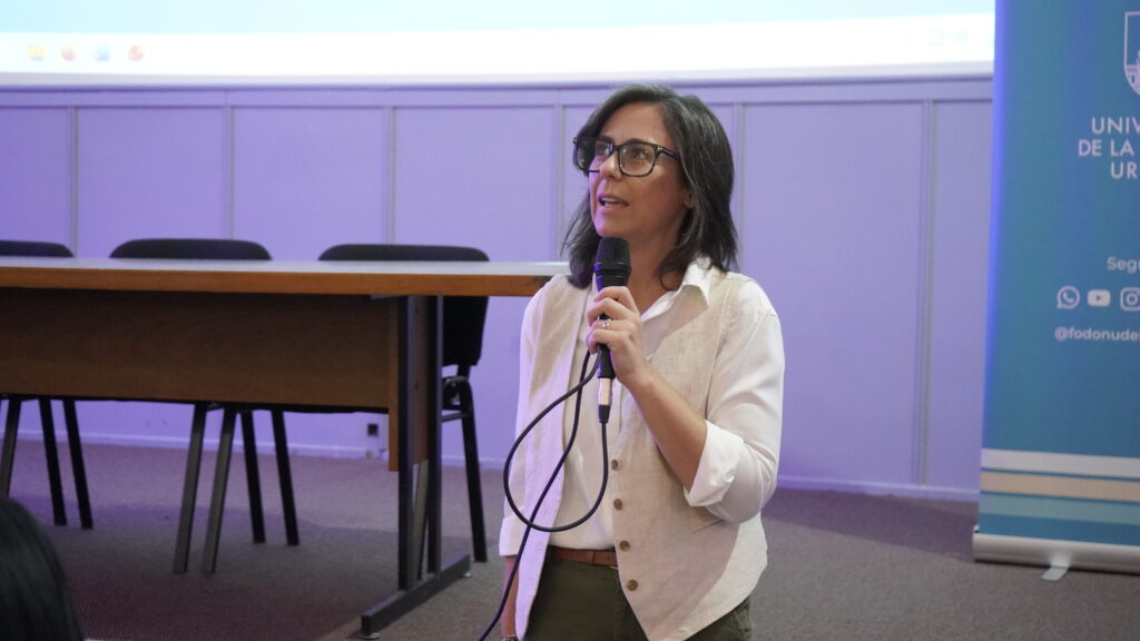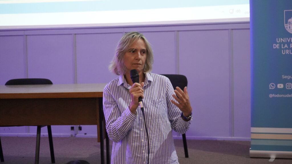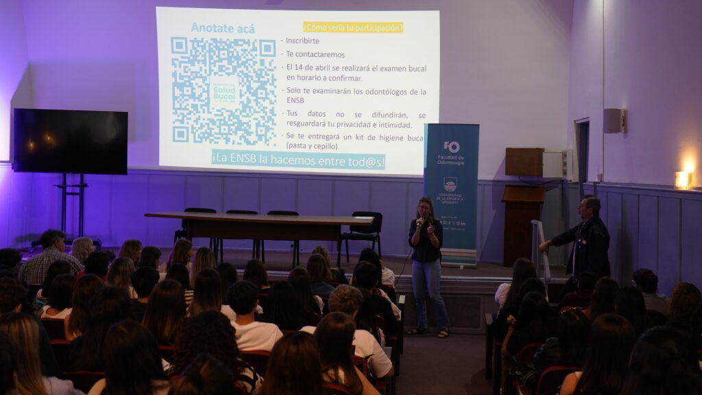 En la Jornada también participó la Dra. Fiorela Apelo, coordinadora del Relevamiento Nacional de Salud Bucal, quien presentó el estudio que se está realizando e invitó a los y las estudiantes a participar en la etapa de calibración de los equipos técnicos que trabajarán Montevideo y Canelones.