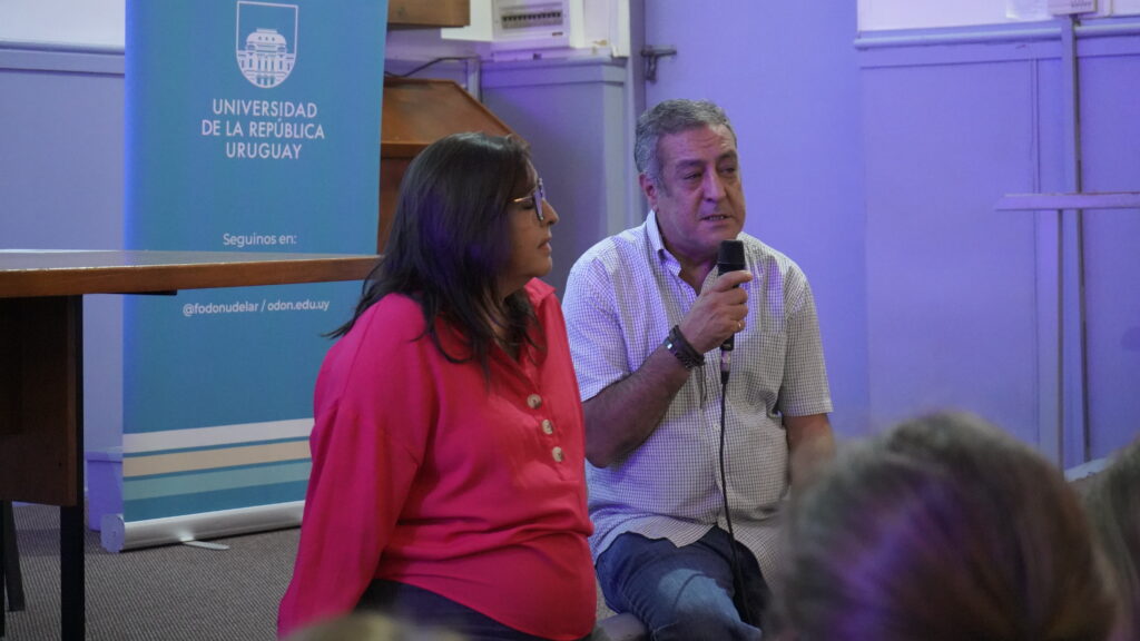 Desde la Asociación de Asistentes e Higienistas, las Asistentes Miriam González y Patricia Clemente, contaron sobre el trabajo que se realiza desde la asociación y manifestaron su disposición para dialogar y recibir a estudiantes durante el transcurso de las carreras. En el mismo sentido, la Lab. Claudia Perna y el Lab. Eduardo Miranda, integrantes de la Corporación de Prótesicos Dentales de Uruguay, mencionaron que existen espacios en la Corporación para los y las estudiantes que quieran acercarse. Asimismo, expresaron la importancia de participar en el cogobierno universitario.