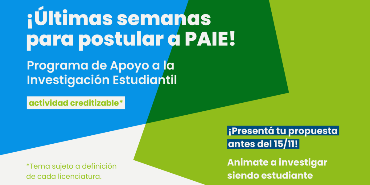 El plazo para postular al Programa de Apoyo a la Investigación Estudiantil (PAIE) cerrará el 15 de noviembre a las 23:59. Esta convocatoria apoya a equipos de estudiantes de grado para que desarrollen su primera experiencia en investigación.